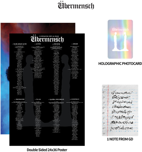 To those unfamiliar, G-DRAGON is regarded by many as the Godfather of K-Pop. Rising to fame in the mid-00's with his group, Big Bang, that later went on to become one of the world's biggest selling boy groups. He quickly stood out with his unique and intricate songwriting as the leader of the group. A talented songwriter and trendsetter within the youth culture and fashion space, G-DRAGON has received a bevy of awards, nominations for his music and fashion sense from the World Music Awards, to Hypebeast's 100 list, to Forbes' 30 Under 30 list, it's apparent that G-DRAGON has cemented his place in cultural relevance. After serving his mandatory South Korean military service and a brief hiatus from music, the global superstar, G-DRAGON has returned! He announced that he signed with indie-powerhouse, EMPIRE, and released his first comeback single on October 31, 2024 with POWER to immediate global fanfare and buzz, with the music video garnering over 44 MILLION views in a month and over 115 MILLION global streams. He soon followed that up with an electrifying performance at the 2024 MAMA Awards show in Osaka coupled with the release of his new single, Home Sweet Home which has garnered 100 MILLION global streams since release. 2025 will see the release of his first full length album since 2017 entitled Übermensch along with global tour dates. The album is expected to make a huge impact globally and further cement his place in music history! 1xLP, Standard Jacket, Rainbow Eco Mix Vinyl (Random Color Vinyl), 1 24x36 Poster, 1 Photocard, 1 Note From GD, Marketing Sticker