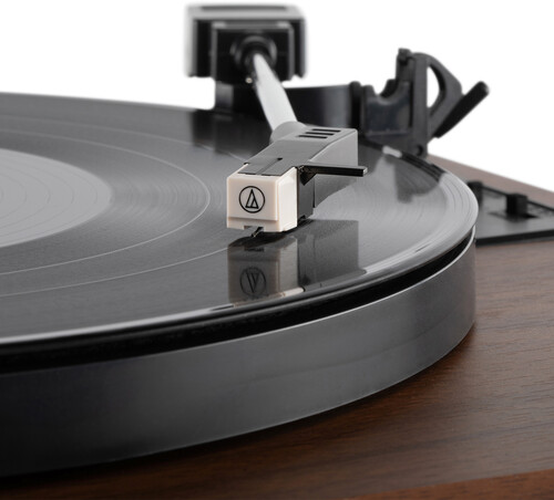 The system is equipped with an Audio-Technica ATN3600L moving magnet cartridge, ensuring clear, precise sound reproduction across your vinyl collection.