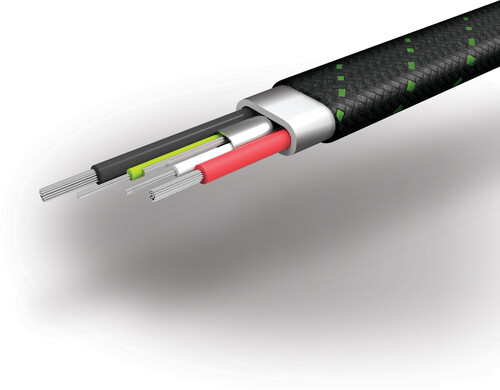 - Contrast color woven shielding.
