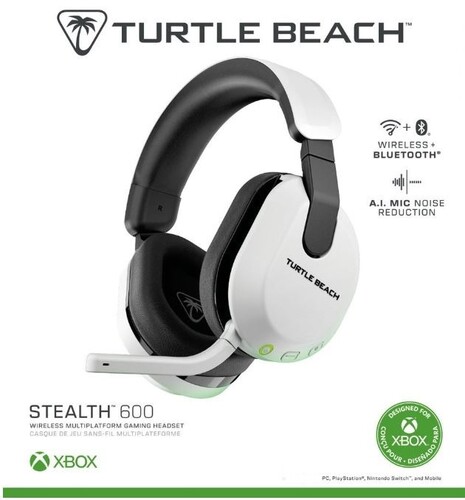 The Turtle Beach Stealth 600 wireless multiplatform gaming headset for Xbox, PlayStation, PC, Nintendo Switch, Steam Deck and mobile is refreshed for a third generation of gaming domination. The built-in QuickSwitch button lets you switch easily between low-latency wireless and Bluetooth connections so you never miss a moment of action. Deliver clear commands with the Gen 3, flip-to-mute mic with A.I. noise reduction and hear precise, detailed gaming audio with 50mm Nanoclear drivers. Plus, using the Swarm II app, you can adjust your microphone & audio settings to your exact, customized preference. And a best-in-class 80-hour battery life, and memory foam ear cushions let you play in total comfort for hours.