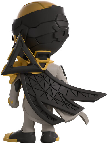 The Timekeeper has decided to expand his reign and has set his sights on Youtooz! Standing at 4.5 inches tall with thick lines running through a stern golden face that’s encased with dark grey cybernetics that wrap around his skull, he holds a floating triangle menacingly in his outstretched right hand.