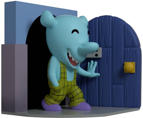 Wearing a bright smile on his face, Winslow makes his entrance standing at 3.6 inches. He is seen walking through his wall hole, with his left hand opening his door and his right hand in his pocket. He is dressed in his original green plaid overalls and purple shoes.
