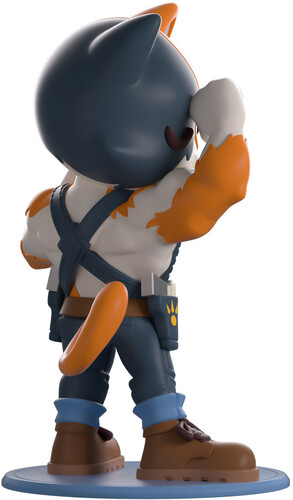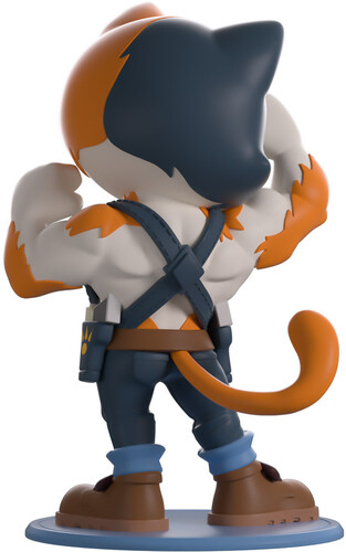 Meowscles has been beefing up to carry you to victory with their Youtooz debut! Standing at 5 inches tall and flexing his massive biceps as he tilts his head down to tenderly kiss one in adoration, pointed ears poke out from the top of his blue, orange and cream calico head that matches an absolutely ripped bare torso. With a dark blue harness wrapping over his shoulders to cross at the back as a pair of pistols rest in the holsters at his hips, he wears tight blue pants and sturdy brown boots as a long orange tail sweeps out from his back.