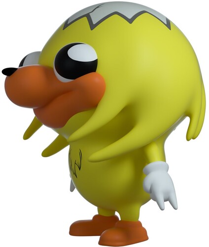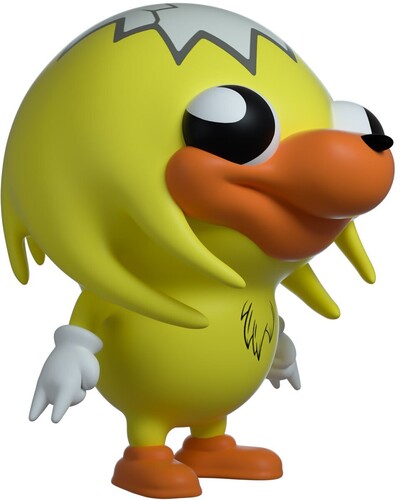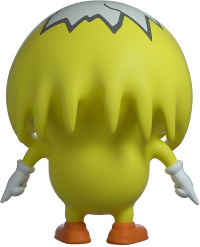 Sculpted in reference to the original dead meme, Easter Chick Meme stands at 2.9 inches tall, painted in a brilliant yellow with a bright orange snout, ready for spring! His eyes have been painted cross-eyed and his arms hang by his sides. A tuff of fur has been etched on his chest. Topping his head sits a cracked part of an egg shell.