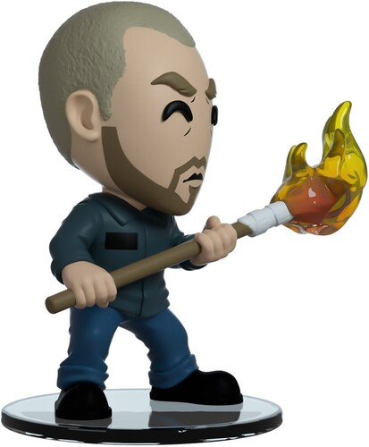Standing at 4.4 inches, Hopper is ready to take on any creature that may come his way. His hair is a short buzz-cut and he is posed in a powerful stance, with his right leg bent a little for better balance. With both hands he is holding a large wooden stick with a flaming fire coming out from one end, his weapon to fight with.