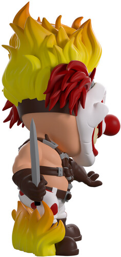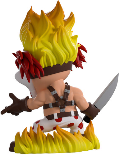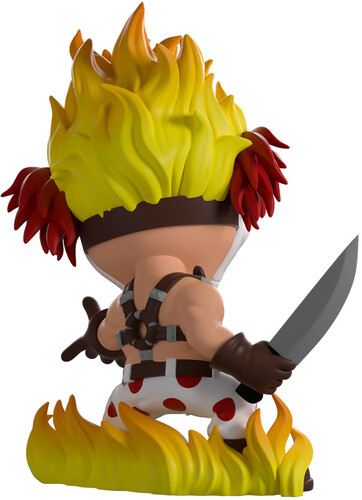 It’s that time of year again… for Twisted Metal! And Sweet Tooth is making sure we know he’s gonna win with his Youtooz debut! Standing at 5 inches tall with a horrific smile stretching across his white mask as a red pupil and cracked eyeball peer out from above its raised cheeks, tufts of red hair poke out from either side of his head as thick flames billow out from the top to match the fire curling around his feet.